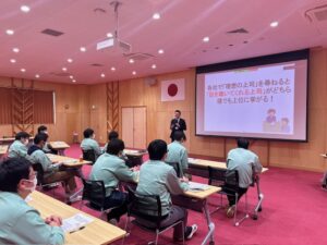 当日は、岡山工場および鹿児島工場の監督職を対象に、鹿児島工場からはWEB参加も交えながら研修を行いました。